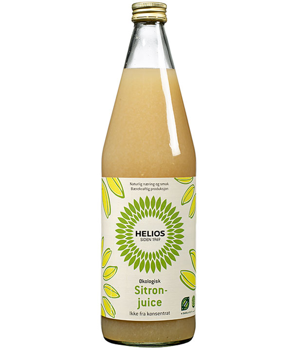 Vi bruker kun solmodne sitroner, som skånsomt presses der de dyrkes. Juicen er ufiltrert, og den friske sitronsmaken er fin i matlaging og forfriskende drikke. Sitron er rik på vitamin C. Juicen er pasteurisert.